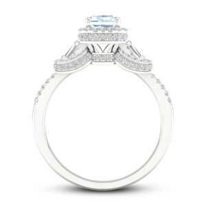 Aquamarine & Diamond Engagement Ring 1/2 ct tw Emerald/Round/Baguette-cut 10K White Gold