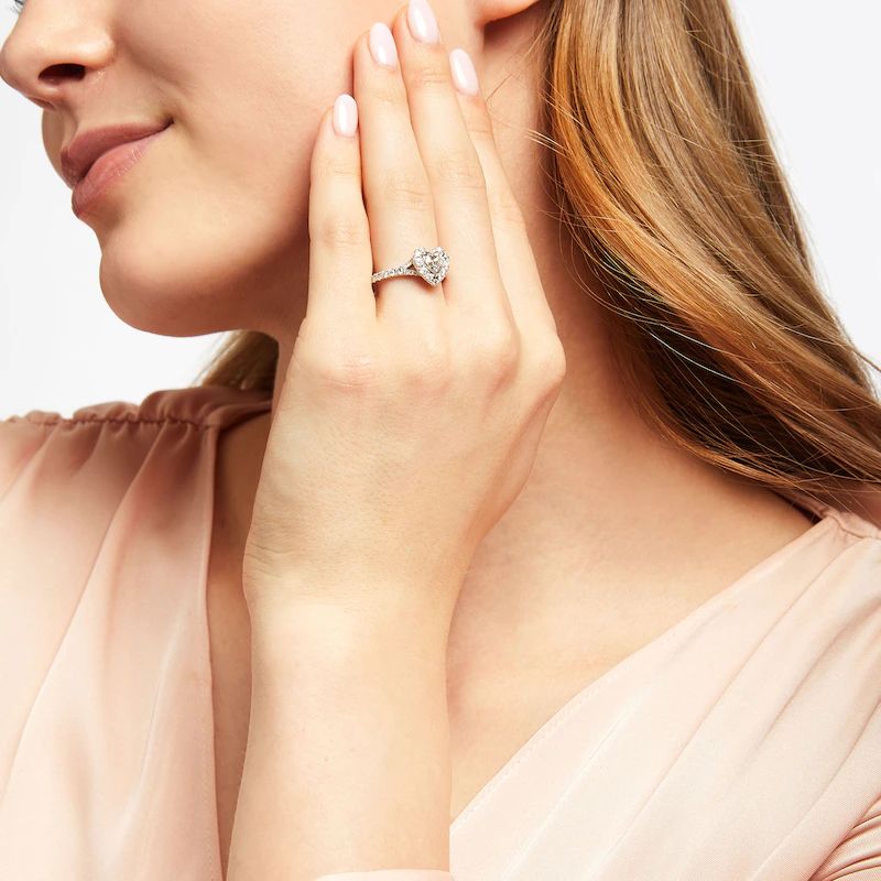 Diamond Engagement Ring 1-3/8 ct tw Heart & Round-Cut 14K White Gold
