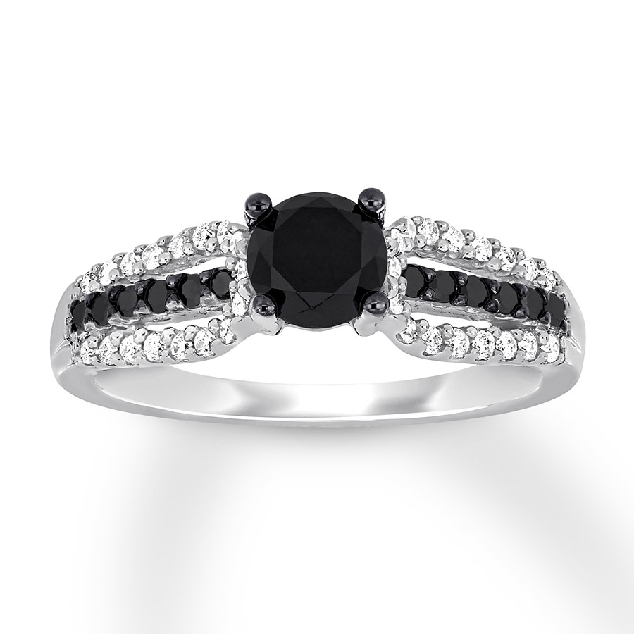 Black & White Diamond Engagement Ring 7/8 ct tw 14K White Gold